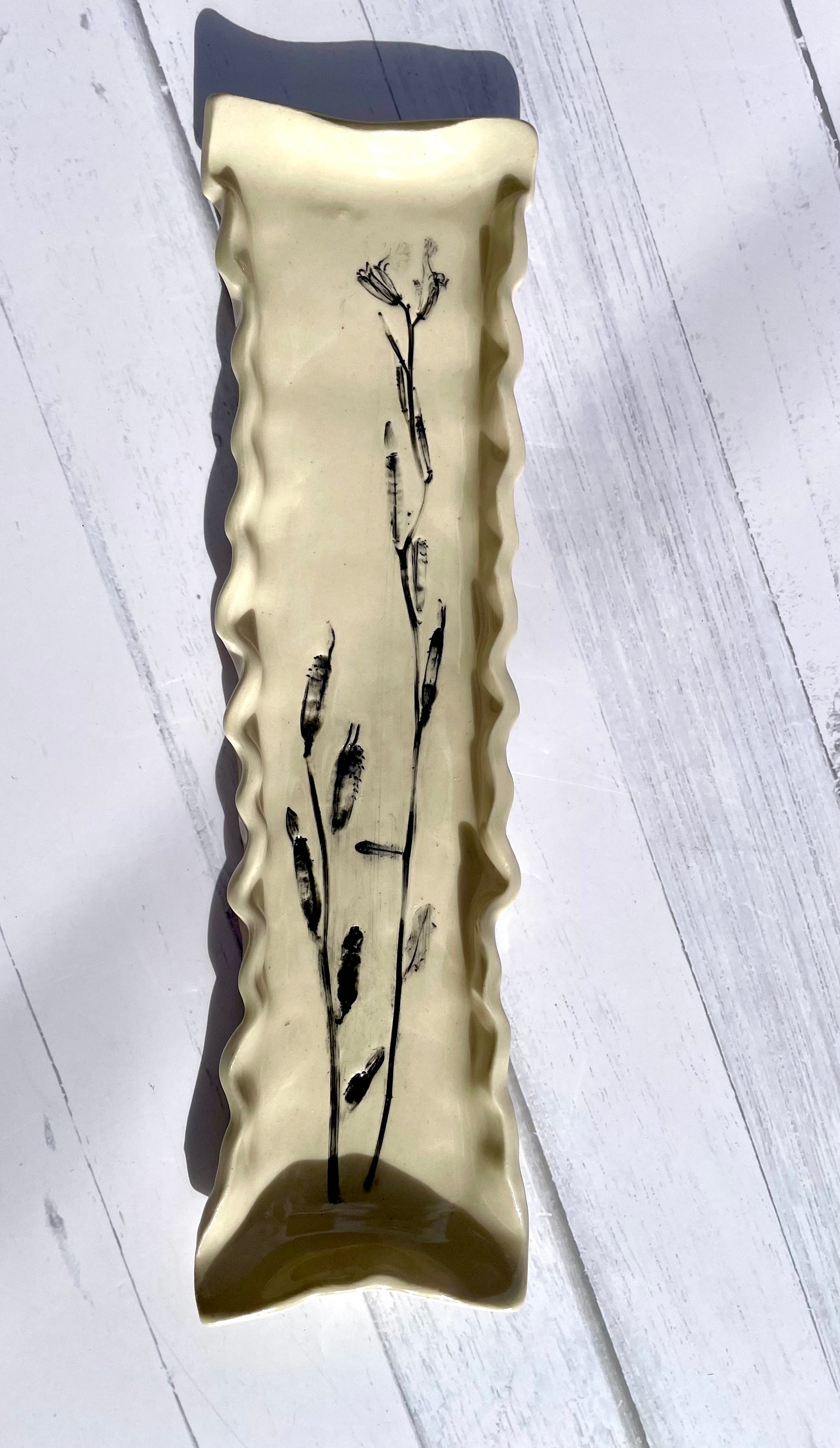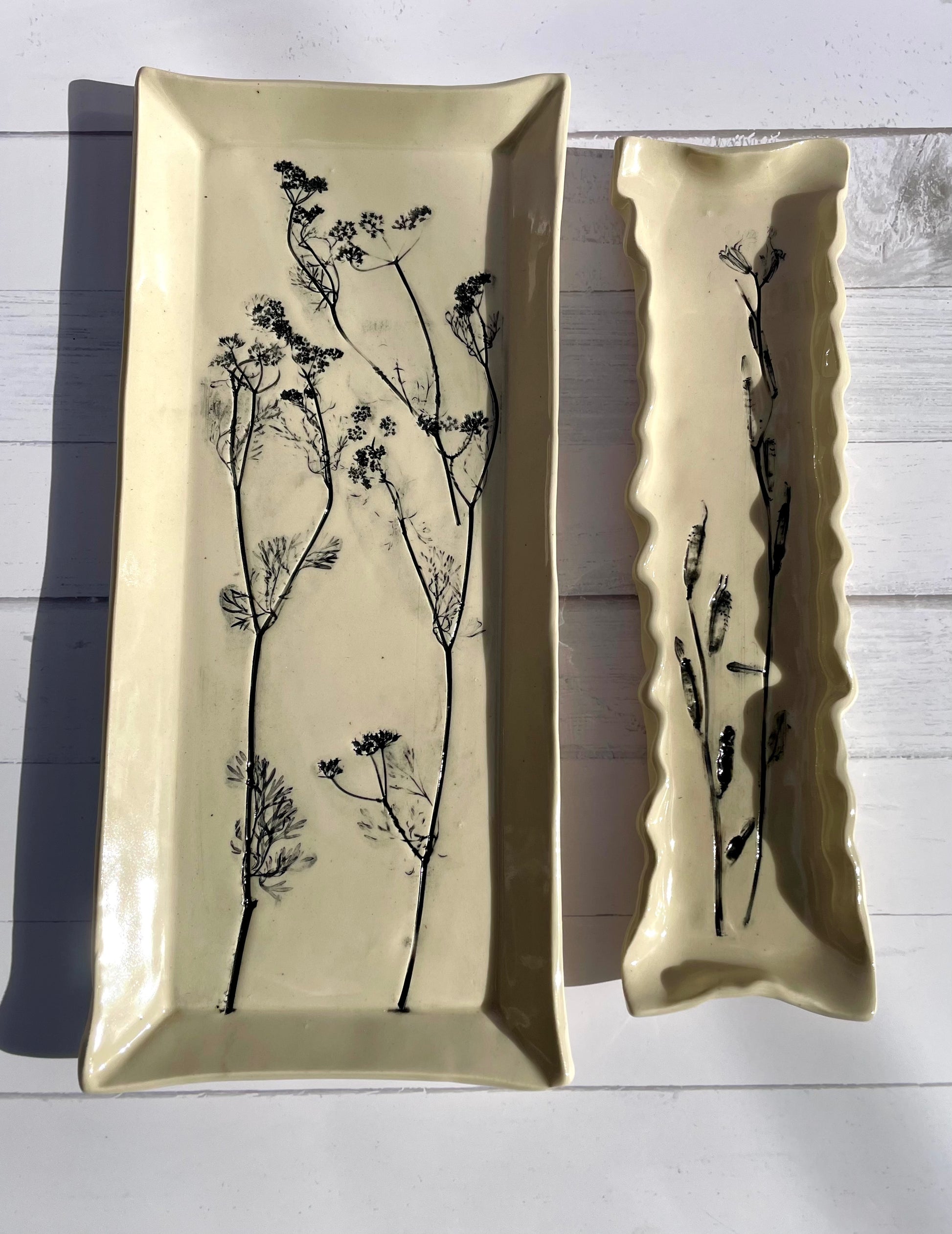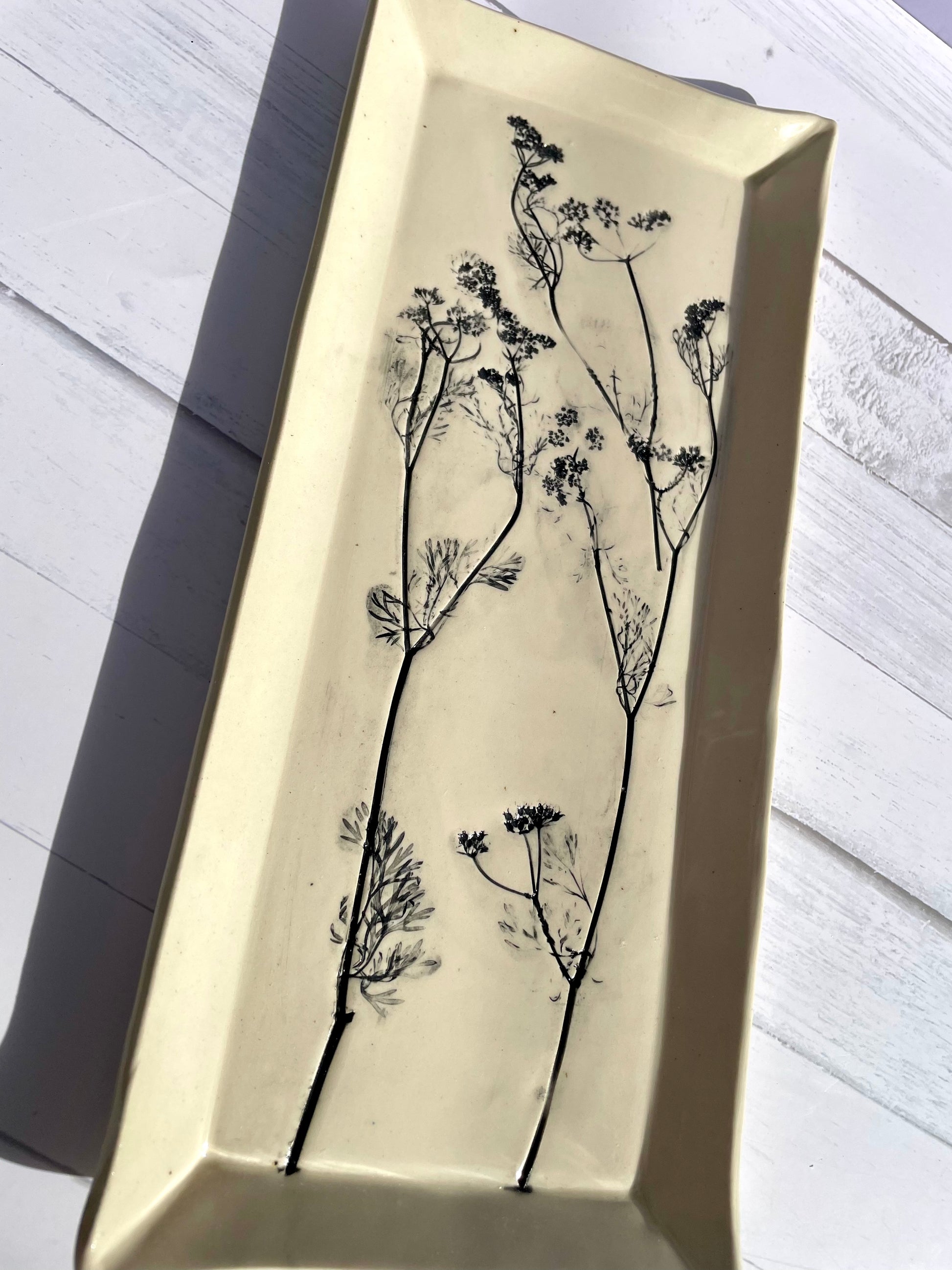 The Gone To Seed collection celebrates the beauty of growth and transformation found in the garden. Each piece is hand-built and pressed with leaves, stems, and seed heads gathered right from my own garden, then finished in earthy glazes that highlight every delicate detail.