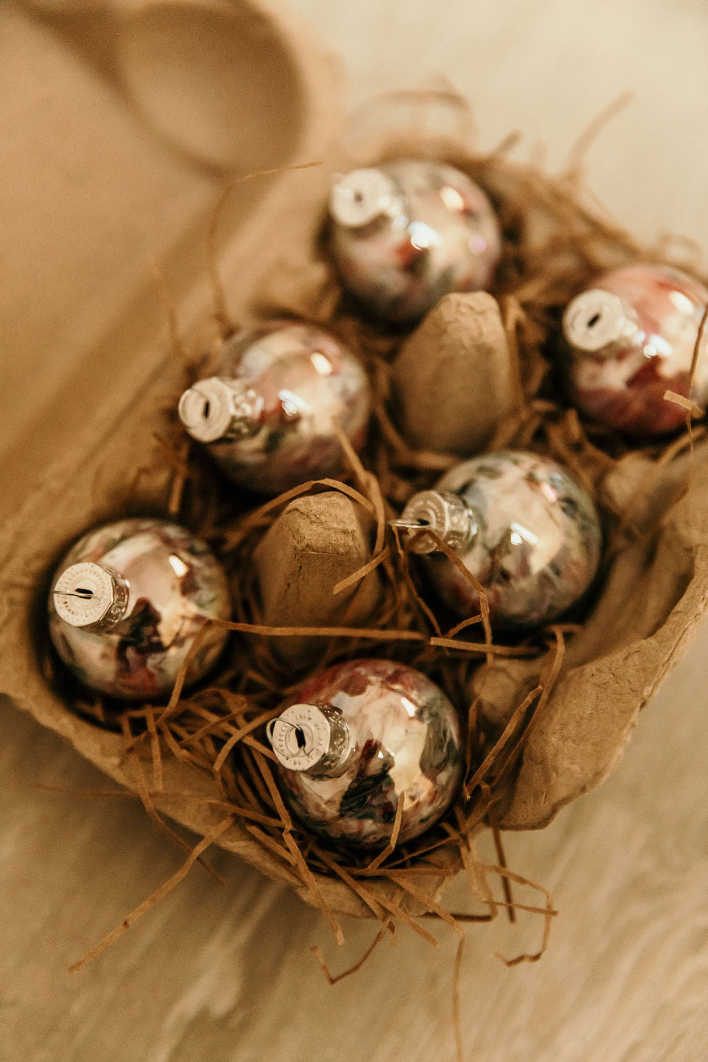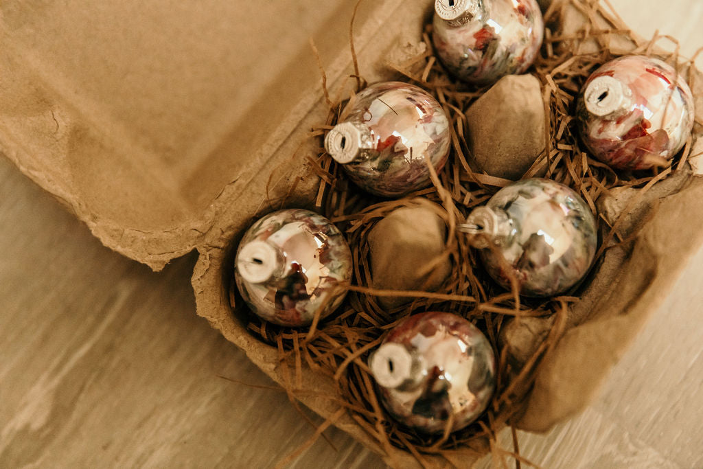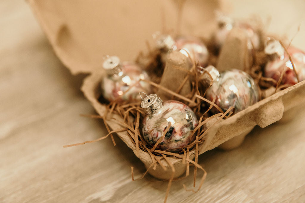 Discover the charm of our Farmhouse Minis! These delightful hand-painted glass baubles come in adorable 6 and 12 pack egg cartons, perfect for gifting or adding a touch of whimsy to your decor.